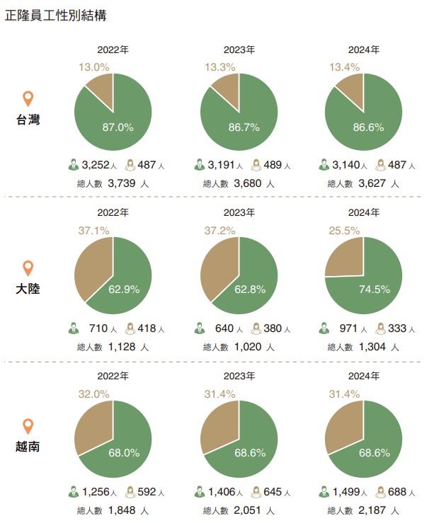 海外部分,正隆於越南共設有六個廠區,均已與當地工團簽署團體協約,並持續透過定期溝通協調,維持勞資穩定、確保工作環境和諧。